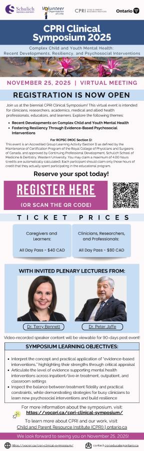 Join us at the biennial CPRI Clinical Symposium! This virtual event is intendedfor clinicians, researchers, academics, medical and allied healthprofessionals, educators, and learners. Explore the following themes: