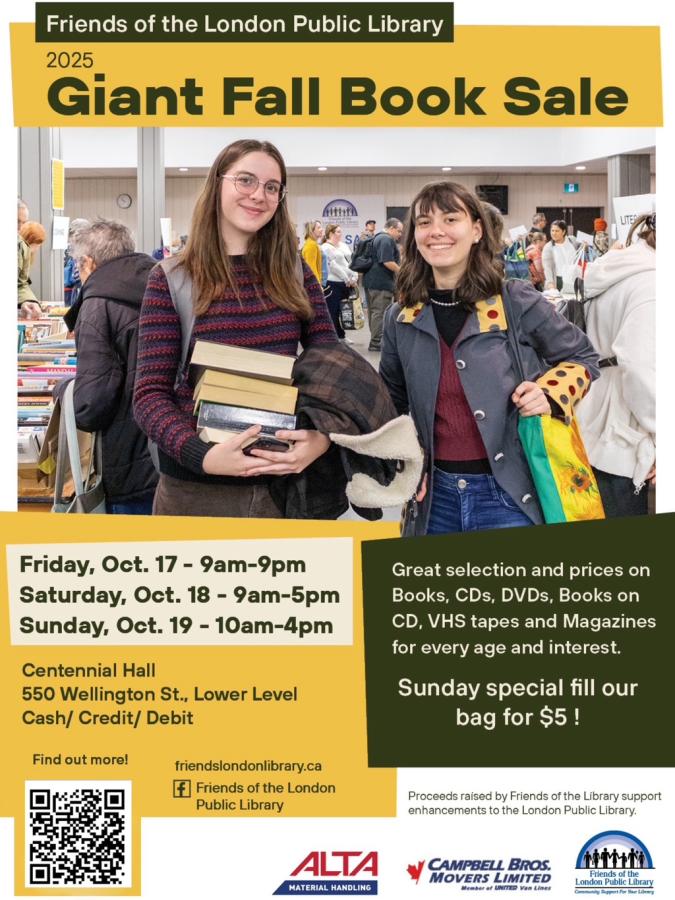 Cash, credit and debit accepted. Proceeds go to London Public Library.