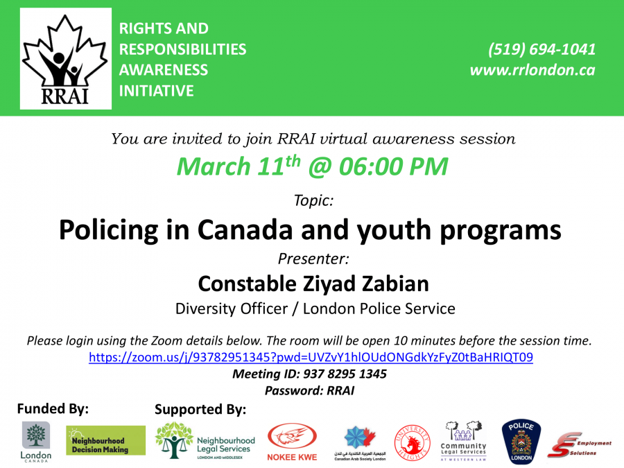 Join us to talk about policing in Canada and youth programs with Constable Ziyad Zabian Diversity Officer at London Police Service.