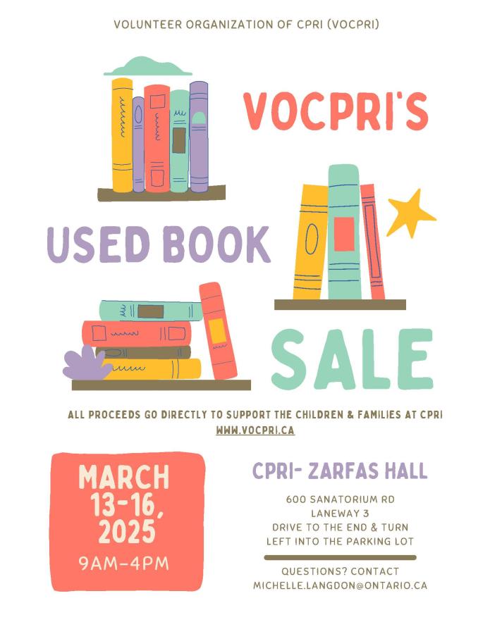 Please join us for VOCPRI's Used Book Sale. All proceeds directly support the clients and families who receive services at CPRI.