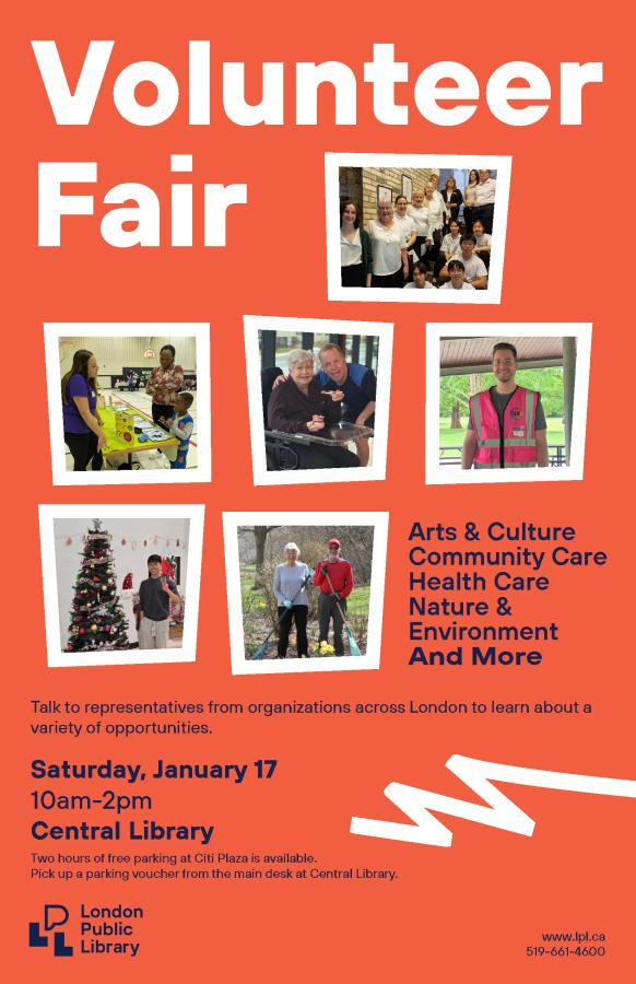 Talk to representatives from organizations across London to learn about a variety of opportunities. Event Poster: Event URL: Volunteer Fair